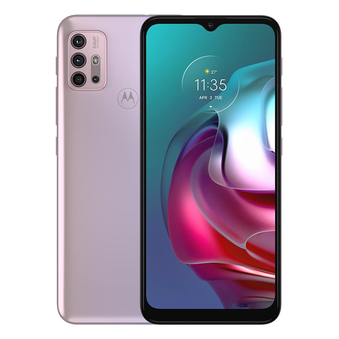 The Motorola moto g(30) is a mobile device with 4GB RAM, 128GB internal storage, and a 5029 mAh battery. It includes a touchscreen, fingerprint reader, and front and rear cameras.